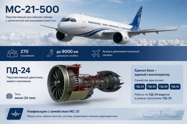 МС-21-500 с двигателем ПД-24 — это не просто ещё одна модификация. Речь идёт о попытке выйти в более прибыльный сегмент перевозок и снизить зависимость от иностранных самолётов.